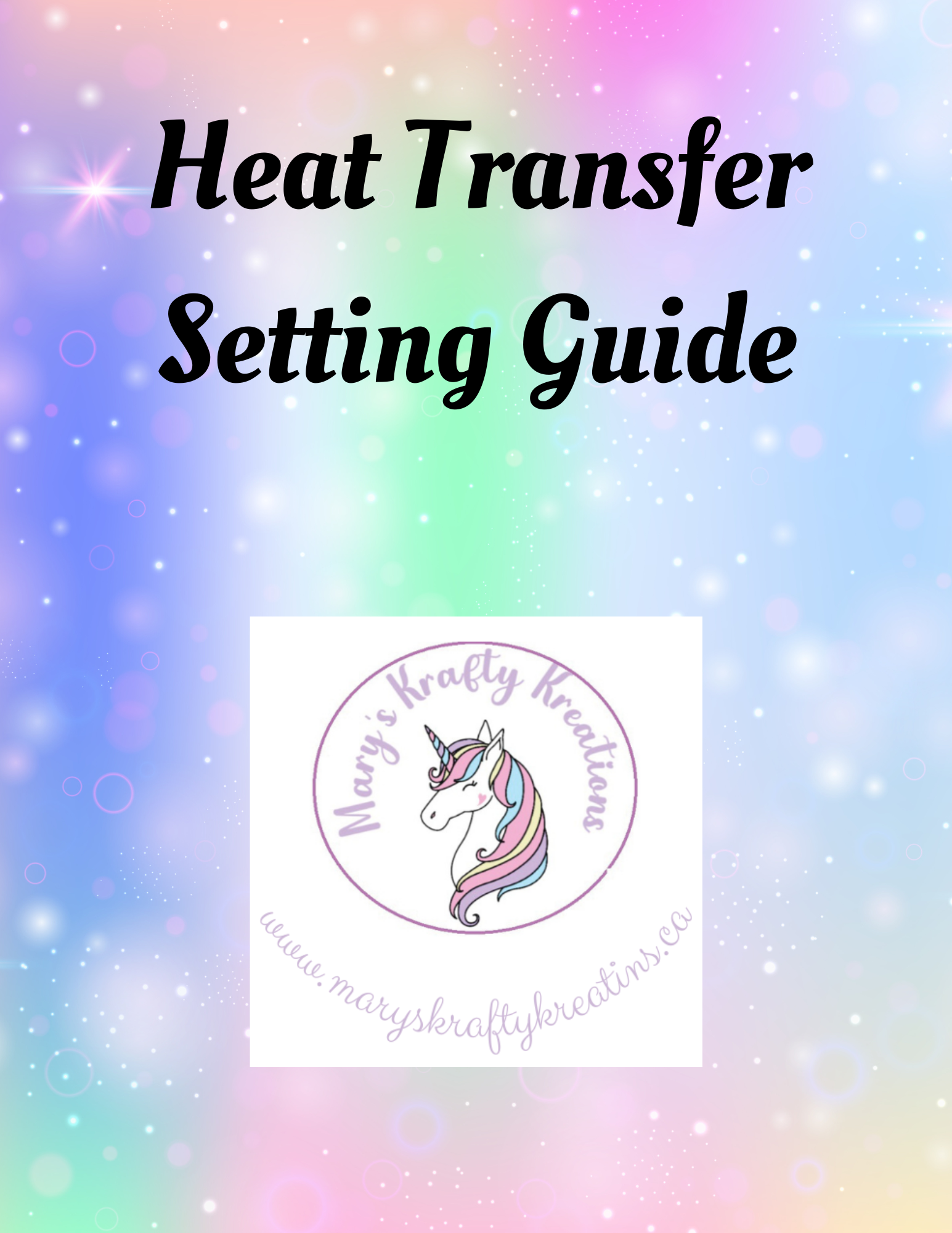 This heat setting guide has 16 of the most used products to place HTV on. I have also included six different types of HTV. All recommended heat settings are all nicely kept in a grid for easy readability and you can laminate it and keep it handy.